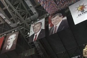 Bir yanda Türk Bayrağı diğer yanda da Ak Parti Bayrağının yer aldığı bölümde, sırasıyla Mustafa Kemal Atatürk, Cumhurbaşkanı Recep Tayyip Erdoğan ve Başbakan Ahmet Davutoğlu'nun posterleri yer aldı. Tribünleri dolduran Ak Parti taraftarları da zaman zaman 'Recep Tayyip Erdoğan' diyerek tempo tuttu.
