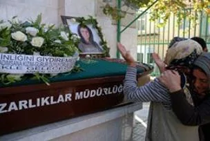 Emine A'nın tabutunun başında, kardeşi Yonca A, annesi Türkan A. ve diğer yakınları gözyaşı döktü. Anne Türkan A, cinayet zanlısı olarak aranan kocası H.A'ya, ''Katil, cani, nasıl kıydın?'' diyerek öfkesini dile getirdi.