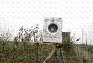 Söğütlü Kaynarca arasındaki yoldan geçen sürücüler ya da yayalar, bir evin önünde yaklaşık 2 metre yüksekliğindeki bir iskele üzerine konulan ve üstünde çeşitli yazılar bulunan çamaşır makinesine bakmadan edemiyor. Aracıyla geçenler ise merak uyandırıcı bu durumu yakından görmek için geri dönme ihtiyacı hissediyor.