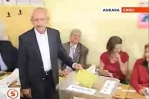 Anayasa değişikliği referandumunda oy kullanamayan CHP Genel Başkanı Kemal Kılıçdaroğlu, Ankara'daki Arjantin İlköğretim Okulu'nda oğlu Kerem Kılıçdaroğlu ve eşi Sevim Kılıçdaroğlu ile birlikte oyunu kullandı.