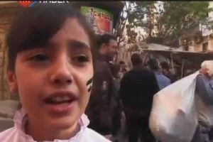 Humus'ta rejim aleyhinde düzenlenen barışçıl bir gösteri bombaların hedefi oldu. 9 yaşındaki bir kız çocuğunun şarkı söylediği sırada meydana gelen patlama, kameralara yansıdı.