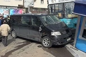 Maltepe'de, freni boşalan özel halk otobüsü, önce cadde üzerinde bulunan elektrik direğine, ardından park halindeki 3 araca, daha sonra da kurulumu yeni yapılan ATM'ye çarparak durabildi. Kazada özel halk otobüsünün şoförü yaralandı.