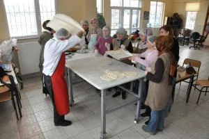 Gölbaşı Belediyesi Meziyet Yılmazer Aşevi'nde düzenlenen hamur işi kursunu 43 yıllık usta Bekir Özdemir veriyor. Pazartesi, salı, çarşamba günleri saat 11.00 ile 17.00 arasında verilen kursa Gölbaşılı kadınlar, büyük ilgi gösteriyor.