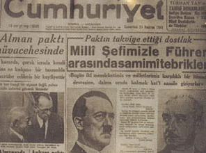 1941'e geldiğimizde 15 Mayıs'ta Hitler'in Milli Şef'e "dostane bir mesaj" gönderdiği haberini manşetten okuruz. 21 Haziran'da ise "Führer ile Milli Şef arasında samimi tebrikler" haberi vardır.
