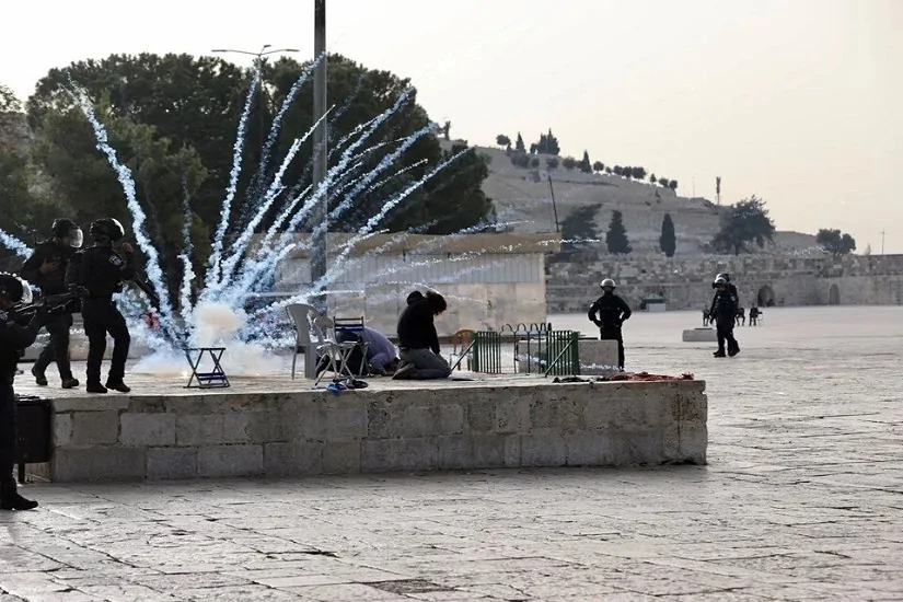 İsrail polisi, işgal altındaki Doğu Kudüs'te Mescid-i Aksa'da bekleyen Filistinlileri çıkarmak için sabah namazından sonra baskın düzenledi.