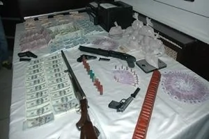 Yapılan aramada, para basımında kullanılan 2 baskı makinesi, 20,50,100 ve 200 liralık banknotlardan oluşan 1.170.540 lira, 100'lük banknotlar halinde 189.000 dolar, 500'lük banknotlar halinde 42.500 euro, 2 ruhsatsız tabanca, 20 poşet uyuşturucu olduğu değerlendirilen madde, 1 pompalı tüfek, 1 av tüfeği, 1 kurusıkı tabanca, 7 adet sahte çek, sahte ehliyet ve sahte kimlik ele geçti.