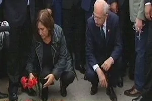 Olay yerine eşi Selvi Kılıçdaroğlu ile gelen Kemal Kılıçdaroğlu ile gelen kemal kılıçdaroğlu patlamanın olduğu yere karanfil bıraktı.