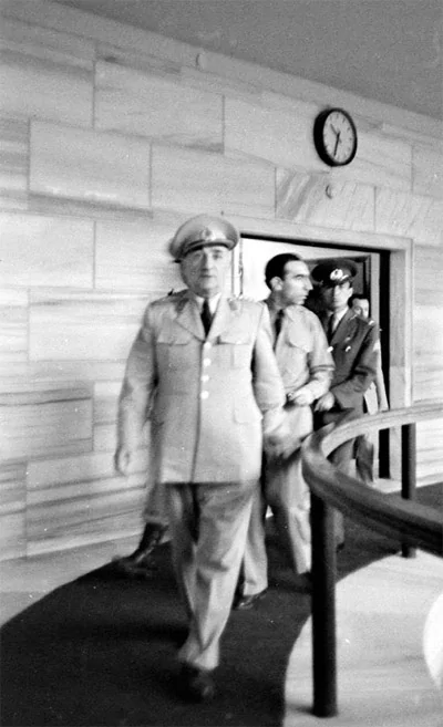 Başbakan Cemal Gürsel, Başbakanlık merdivenlerinde… Az sonra aşağı inip tarihi kapıda kendisini bekleyen gazetecilerle karşılaşacak.