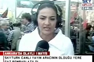 Sıhhıye Meydanı'nda polislerle göstericiler arasında arbede yaşandı. Bu esnada gelişmeleri aktaran Skytürk canlı yayın aracına gaz bombası isabet etti. Tam önüne düşen gaz bombasını farkeden muhabir canlı yayınını sürdürmek istedi. Ancak etrafa yayılan dumana fazla dayanamadı. Kesilen canlı yayın sonrası tekrar bağlanılanan muhabirin sağlık durumunun iyi olduğu görüldü.