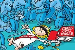 Sabah Gazetesi'nden Salih Memecan demokrasiden Jüristokrasiye geçişimizi simgeleyen kararı böyle karikatürize etti…