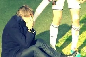 İtalyan teknik adam kendi oyuncusu Bonetti’nin sert biçimde vurduğu topla bir anda yerde kaldı.