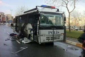 İmrahor Caddesi üzerindeki AK Parti İl Başkanlığı ile MÜSİAD binaları önünde hareket halindeki Çevik Kuvvet otobüsü yakınında patlama oldu.