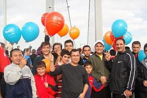 Radyoların logolarının yer aldığı balonları taşıyan dinleyiciler ise kalabalığın içerisinde radyo yönetcileriyle birlikte yürüdü. Maratonda heyecanlı anlar geçirenler olduğu gibi köprünün sallanmasından dolayı tedirgin olup maratonu yarıda bırakanlar da vardı. İşte köprünün salladığı o anlar… Avrasya Maratonu'na Samanyolu Radyolar Grubu kordinatörü Kemal Gülen, Samanyolu Haber Radyo Genel Yayın Yönetmeni Mazhar Arslanoğlu, Burç FM Genel Yayın Yönetmeni Bünyemin Şen katıldı.