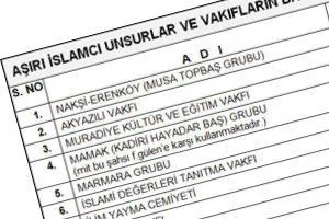 İşte "Aşırı İslamcı unsurlar ve Vakıfların bağlı bulunduğu tarikat ve dinî akımlar" başlığı verilen cemaat, tarikat, grup ya da vakıflar şöyle: