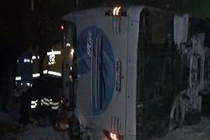 Erzincan'da yolcu otobüsünün şarampole devrilmesi sonucu ilk belirlemelere göre 1 kişi öldü, 45 kişi yaralandı.